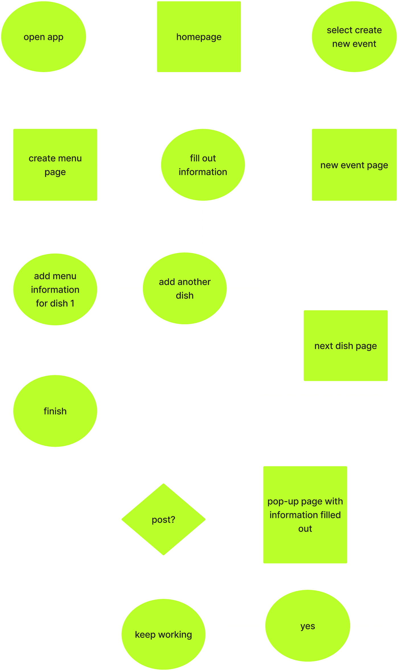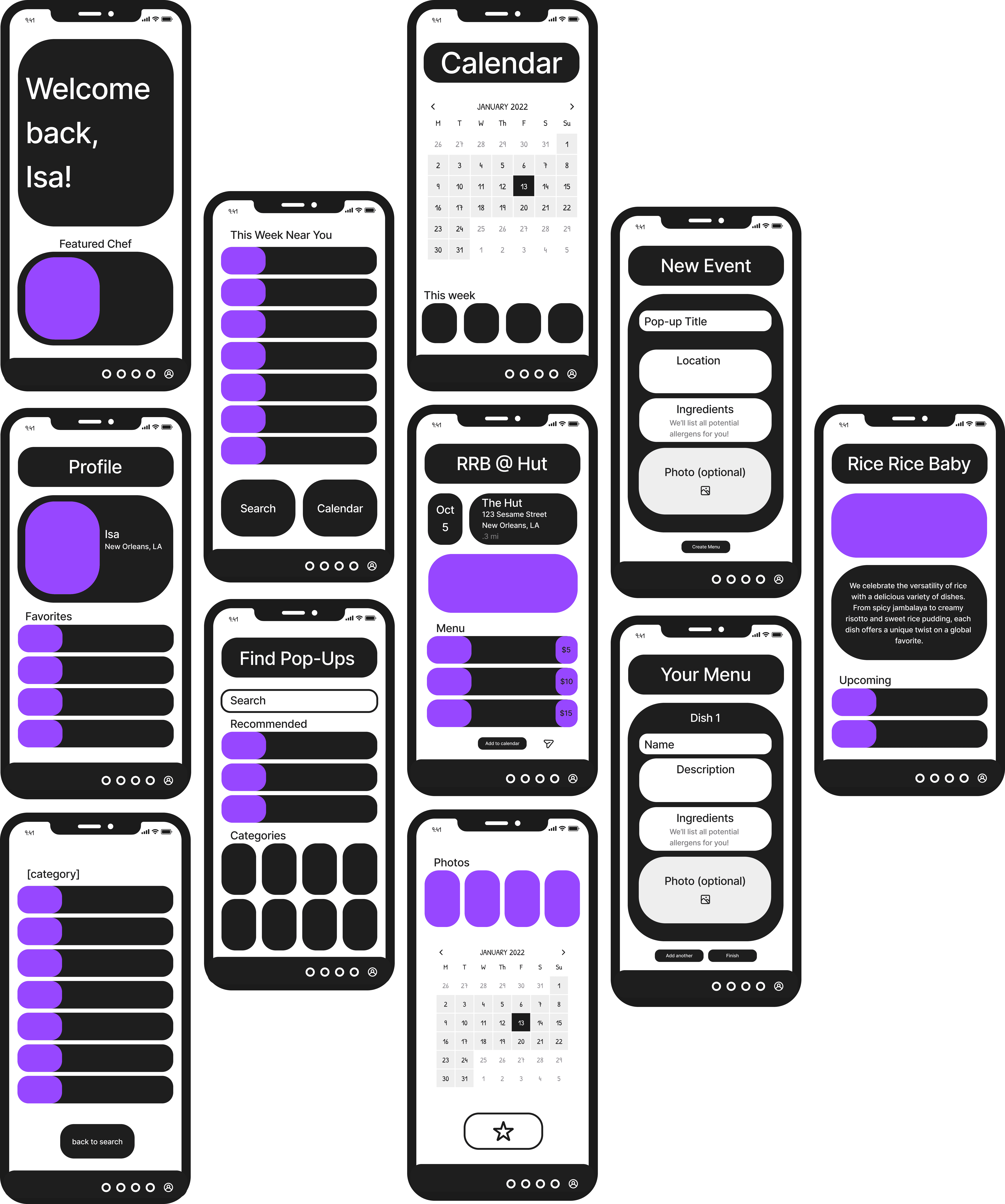 When iterating on my wireframes, I wanted to make sure to cater to both front-end (customers) and back-end (pop-up owners) users. I wanted to make sure that the cognitive load of creating an event and menu is not too high, but also maximize the impact of adding a menu.